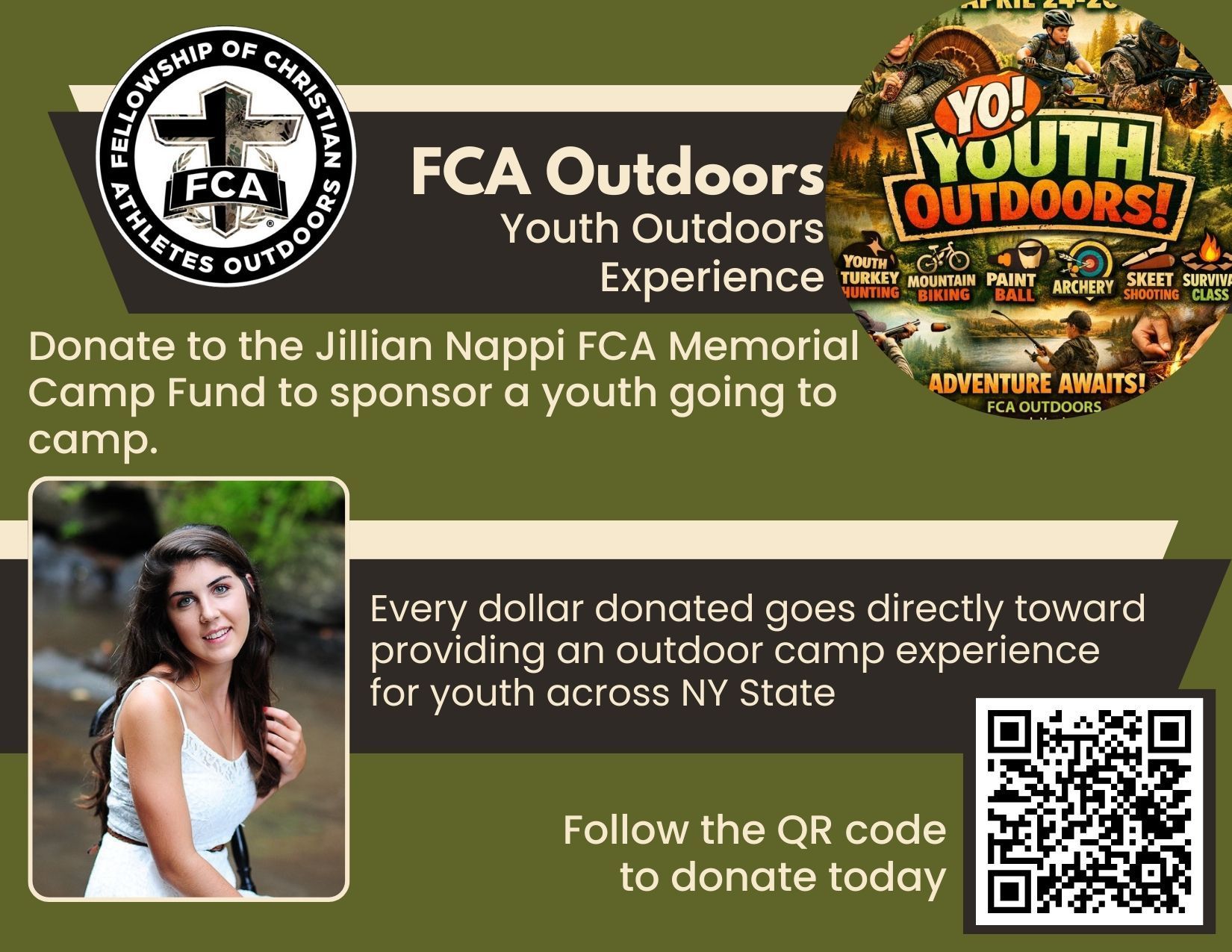 Donations provide FCA camp scholarship money to keep costs low for our athletes. Donations are made in memory of Jefferson Central School student athlete Jillian Nappi, a girl who loved Jesus